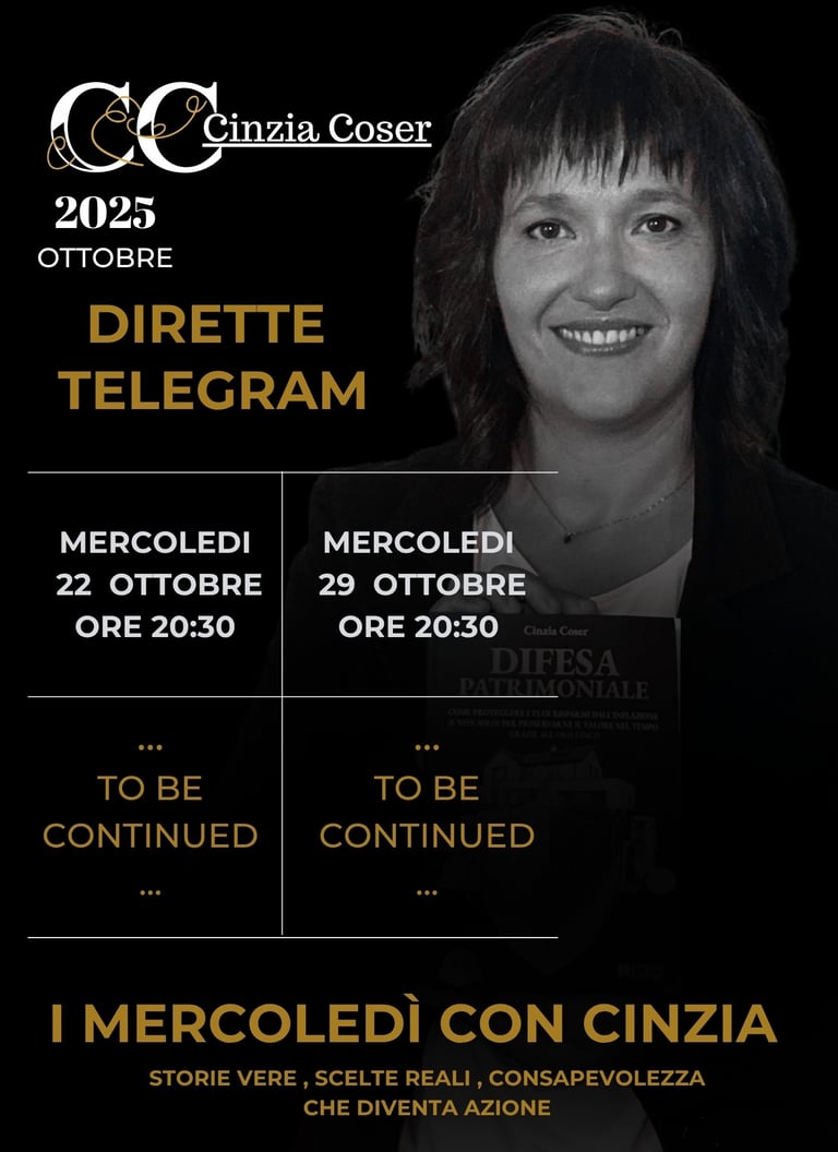 Mercoledì alle ore 20:30 sul canale Telegram “ Oro per Tutti “ con Cinzia Coser e con un ospite diverso ogni settimana per parlare di consapevolezza, scelte e azione nella vita reale.